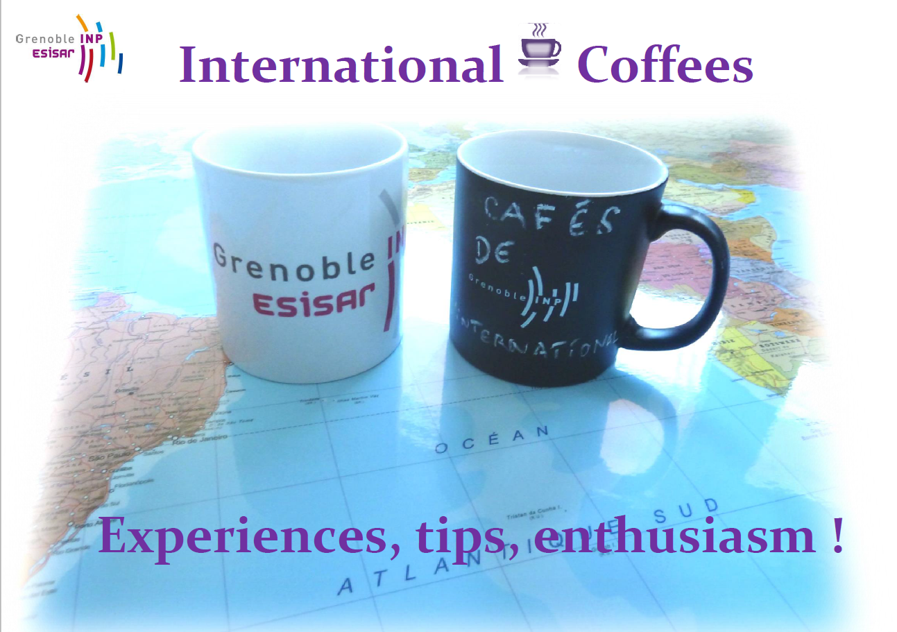 Coffees are a dedicated time of information on mobility opportunities worldwide. Come and listen to the testimonies of those who have gone abroad and of international students attending Esisar on their experience: framework of their mobility project, destination, accommodation ... They share their experiences, their tips and, most of all, their enthusiasm!