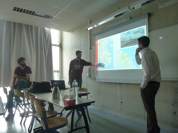 Dialectes différents selon les régions, photos de la baie d’Halong (« le plus bel endroit du monde », selon Benoit), rizières, plages de sable blanc, maisons typiques, échelle du pays (« Je suis allé dans une petite ville en montagne, je pensais que c’était petit sur la carte et je me suis rendu compte qu’il y avait 300 000 habitants » s’étonne encore Martin)… De découvertes en étonnements, dépaysement garanti, à commencer par la température à l’arrivée (« un choc physique »), la tombée précoce de la nuit, mais aussi la plage très peuplée à 4 heures du matin : « on rentrait dormir et eux se levaient et faisaient leur gym sur la plage, il y avait plein de monde ! ». Côté nourriture, « prévoyez un temps d’adaptation », prévient Sébastien, qui s’est avoué un peu mitigé sur ce point, tout en reconnaissant que le coût des repas y est dérisoire. « Le repas en barquette coûtait 60 centimes d’euro. C’est un rapport de cinq : ce qui coûte 20 euros ici, en coûte 5 là-bas ». Et d’ajouter que tout est négociable. Des scooters peuvent être loués pour 4 euros la journée, « mais le trafic se fait… à l’instinct », reconnait Martin. Les anecdotes des trois Français sur la circulation font beaucoup rire les trois étudiants vietnamiens présents, surtout lorsqu’ils racontent la façon dont les scooters roulent dans tous les sens… Ce qui ne les a pas empêchés d’emprunter ce moyen de transport malgré tout commode pour se rendre d’un endroit à un autre ou rallier leur lieu de stage.