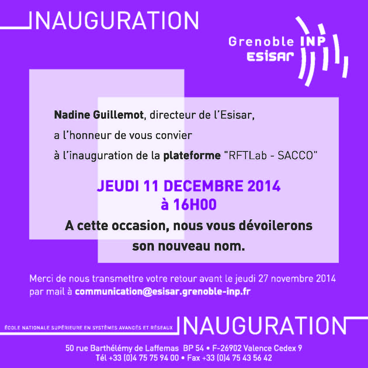 Le jeudi 11 décembre à partir de 16H nous inaugurerons notre plateforme technologique Rhône-Alpes sur le site de l'Esisar.