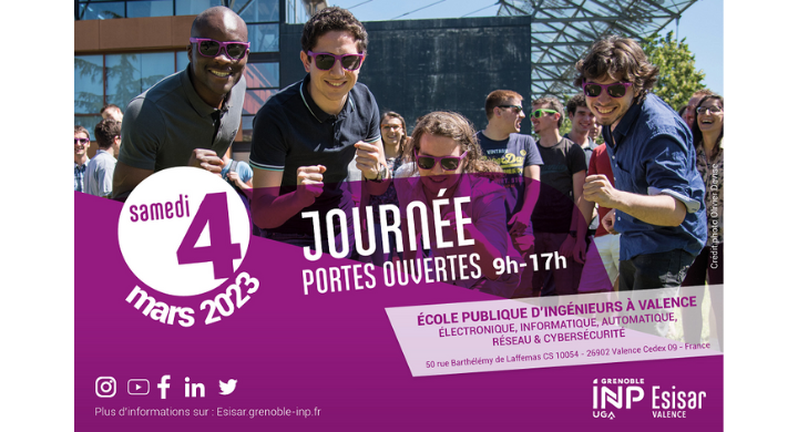 La Journée Portes Ouvertes de Grenoble INP - Esisar, UGA se déroulera le samedi 4 mars 2023 de 9h à 17h.