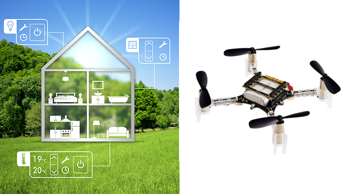 La domotique permet la surveillance et le contrôle des systèmes placés à l'intérieur d'un bâtiment ou d'une maison. Par exemple, il permet non seulement de mesurer la température d'une pièce ou de détecter une présence humaine, mais aussi de contrôler l'accès à une pièce ou d'allumer les lumières en fonction de ces capteurs ou d’informations données par contrôle vocal.