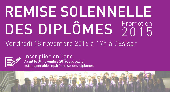 ceremonie.diplomes@esisar.grenoble-inp.frVous pouvez vous inscrire à la remise des diplômes via le carton d'invitation envoyé a votre adresse mail ou via le formulaire ci-dessous :